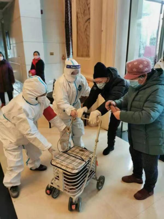 史晓红主动参加石家庄市防疫志愿工作帮助社区居民采购物资。鼎和保险河北分公司 供图
