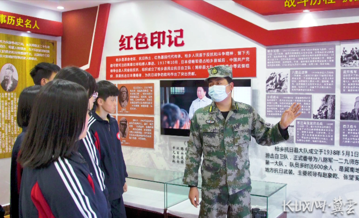 在柏乡县军事展览馆对学生进行红色教育。郝俊平 供图