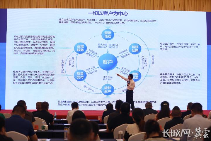 研讨会现场,河北神玥软件科技股份有限公司董事长郭永强作了“数字化转型的先锋力量,领航新质生产力”主题演讲,分享了他对数字化转型的独特见解和实践经验,也让大家对数字组织建设、数字技术真正为业务发展赋能有了更深层次的了解。