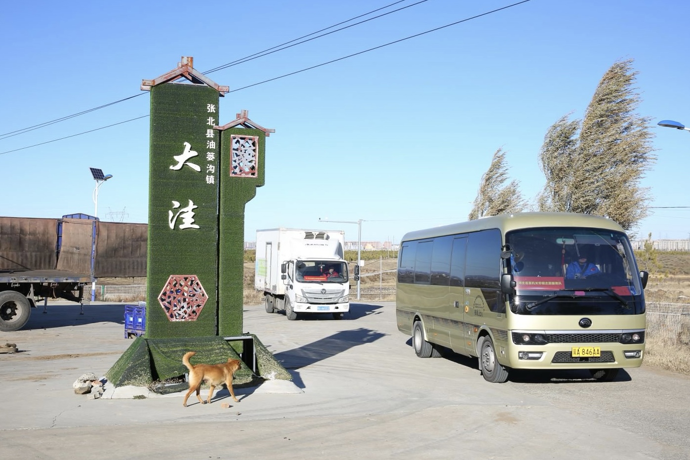 志愿服务车队缓缓驶入张家口市张北县油篓沟镇大洼村。长城网·冀云客户端通讯员 刘欣 摄