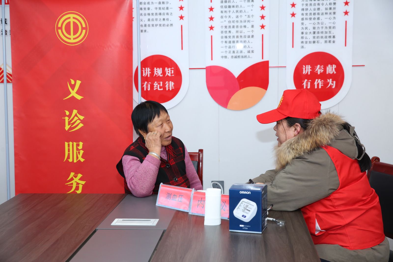志愿者为村民提供义诊服务。长城网·冀云客户端通讯员 刘欣 摄