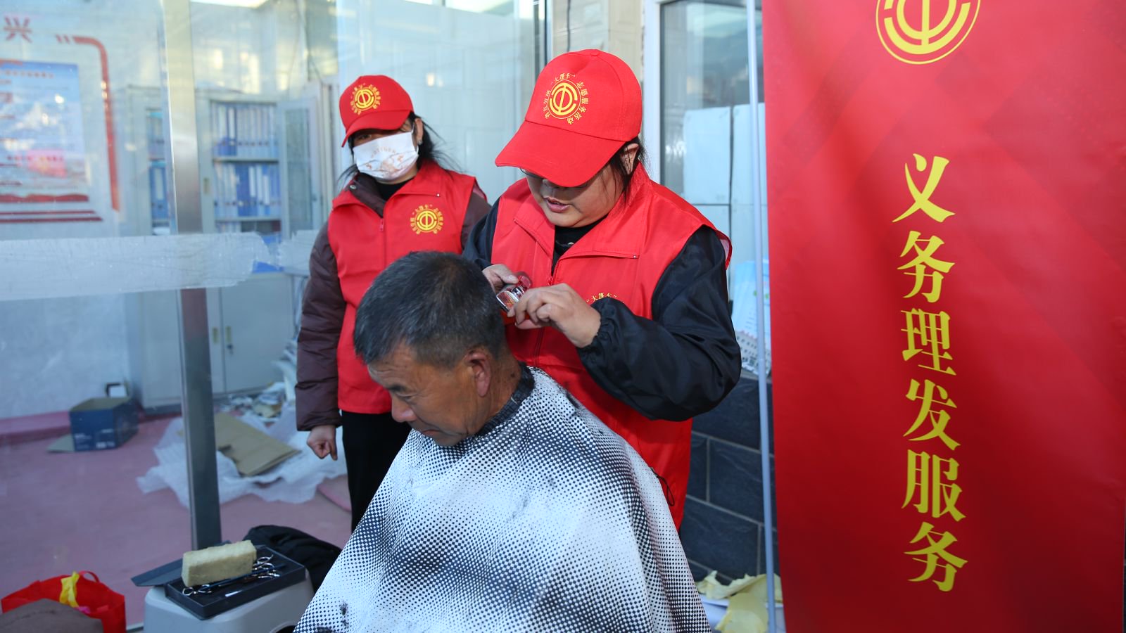 志愿者为村民提供义务理发服务。长城网·冀云客户端通讯员 刘欣 摄