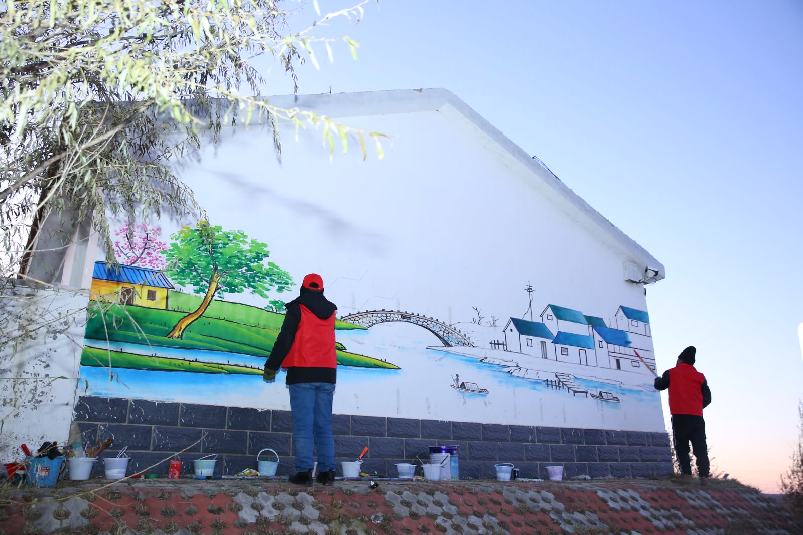 志愿者正在进行村容村貌美化工作。长城网·冀云客户端通讯员 刘欣 摄