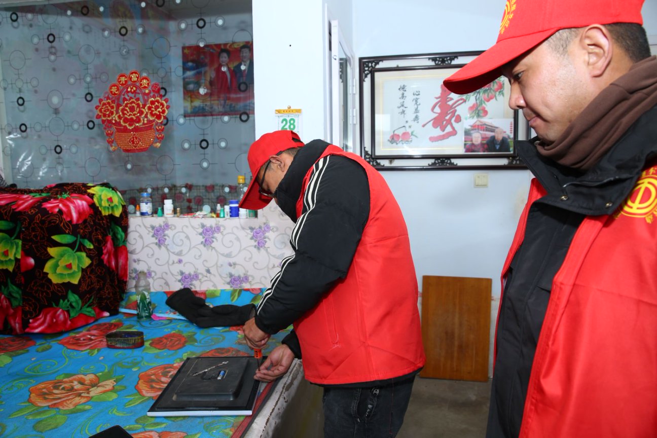 除集中服务之外,志愿者团队还主动延伸服务触角,提着米面油等生活物资,深入村内高龄村民家中进行慰问。在村民家中,志愿者们仔细检修老旧家电,逐一排查线路故障、更换损坏零件,让“沉睡”的家电恢复使用。检修完毕后,志愿者们又拿起相机,为村民们拍摄全家福,用镜头定格温馨的家庭瞬间。