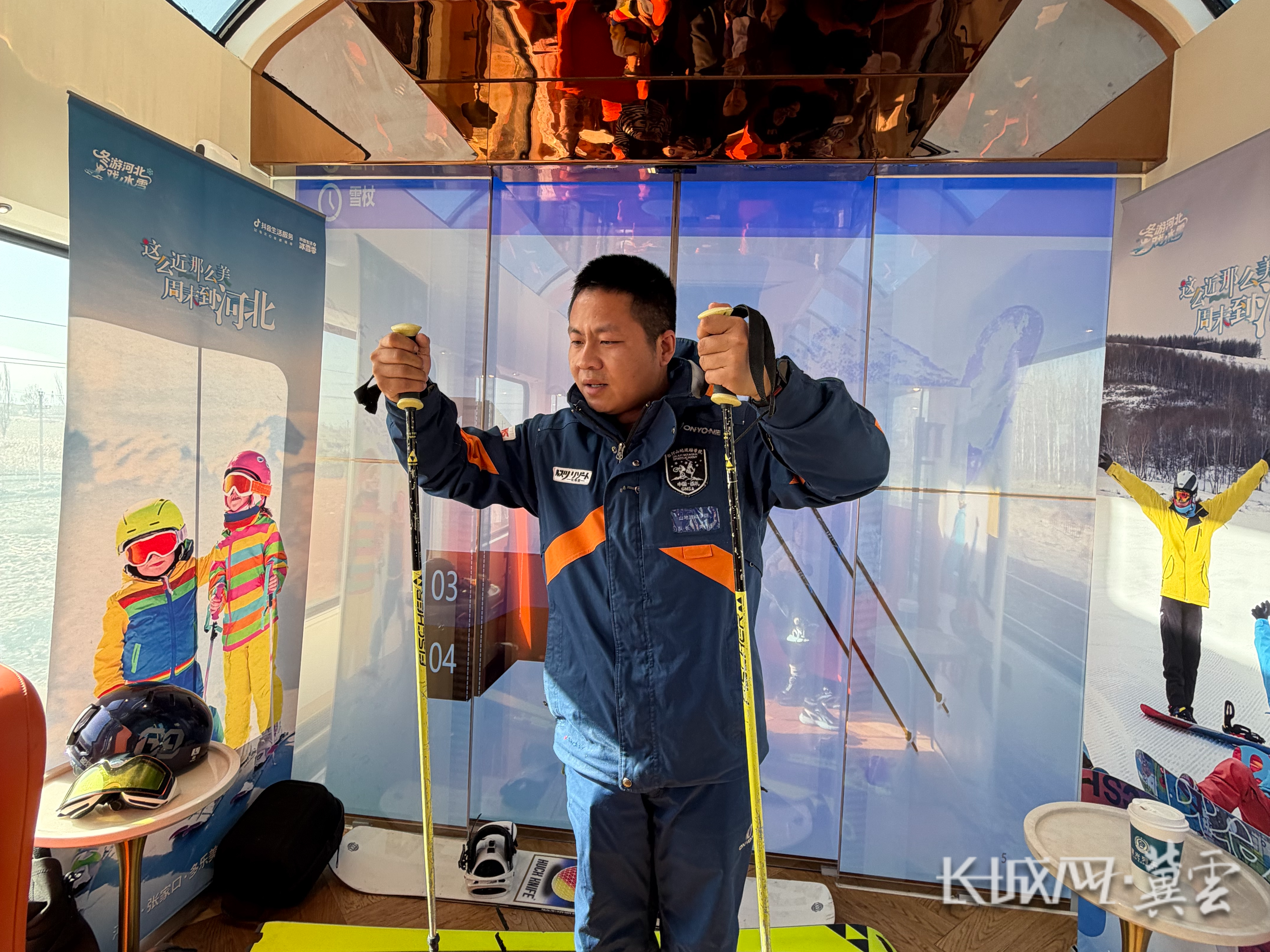 Y957次“星光·燕赵号”全景观光旅游列车特别开设“滑雪公开课”。长城网·冀云客户端记者 王林红 摄