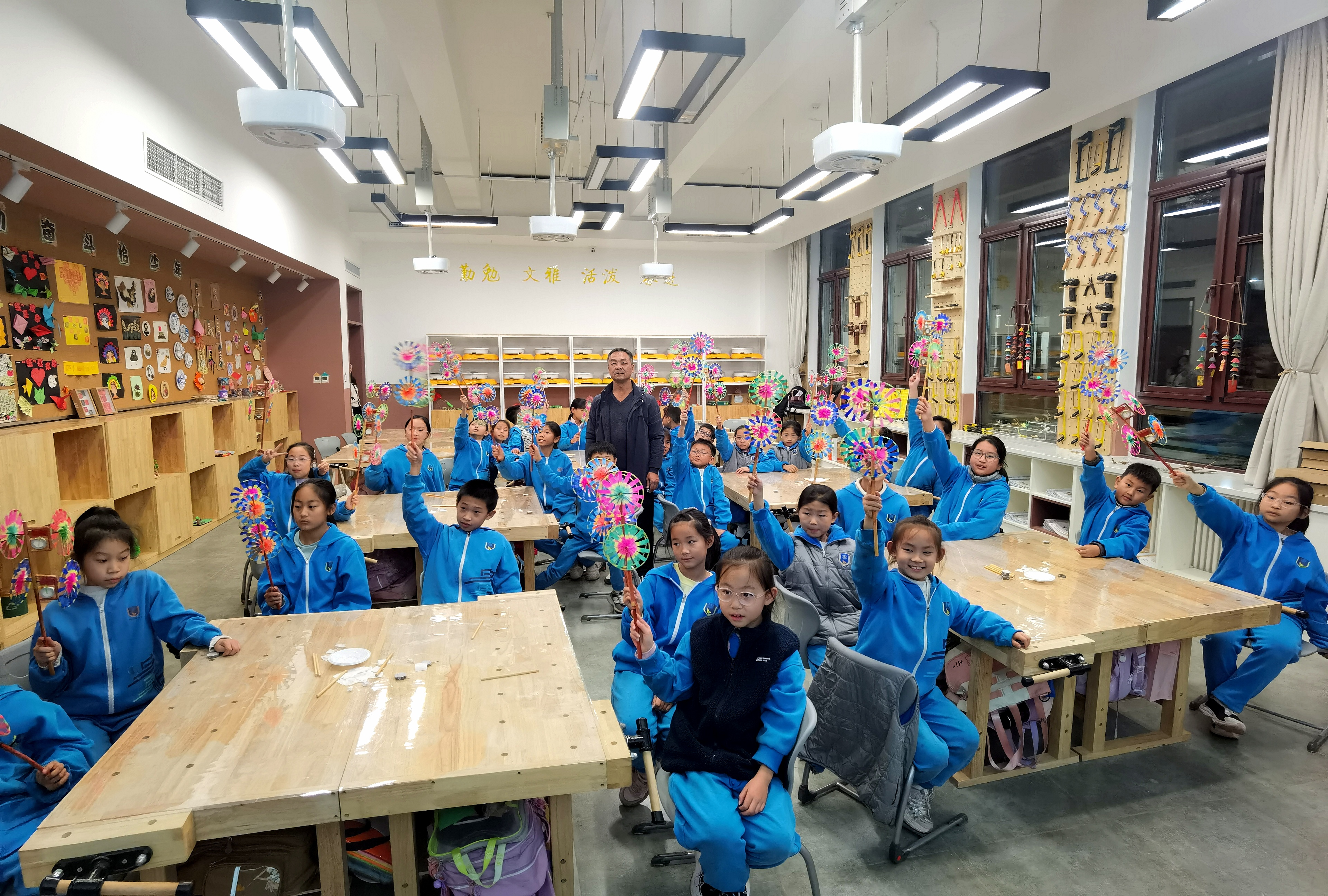 风车制作技艺代表性传承人在史家胡同小学雄安校区为学生们授课。长城网·冀云客户端记者 苏晓瑞 摄