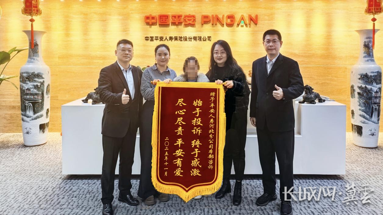 次日上午10时许,杨女士手持一面写有“始于投诉,终于感激,尽心尽责,平安有爱”的锦旗,再次走进该公司,向刘畅、孙云巍及平安人寿河北分公司表示感谢。