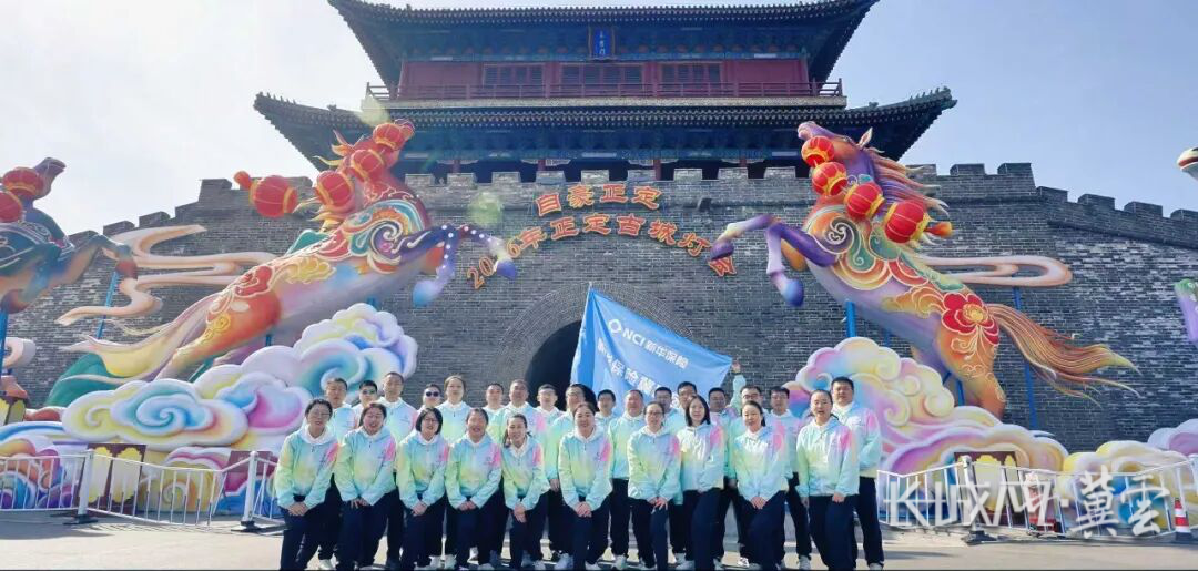 “新华保险冀跑团”在正定古城地标前合影。新华保险 供图