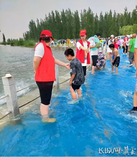 活动中,水利局组织了72人的滹沱河秩序管护志愿服务队,在滹沱河相关景点开展志愿服务。烈日炎炎,志愿者冒着高温,对滹沱河景区近5公里的河岸线及4个重要景点、节点进行巡查巡逻,劝导群众不要在水域里野泳或垂钓。