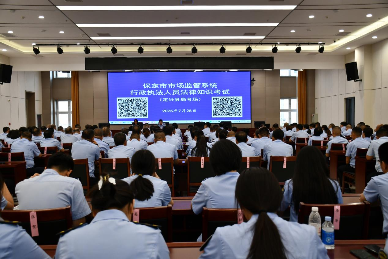 定兴县市场监督管理局全体领导班子成员以“考生”身份与全局204名执法人员同场参考,以上率下营造“学法规、强本领”的浓厚氛围。