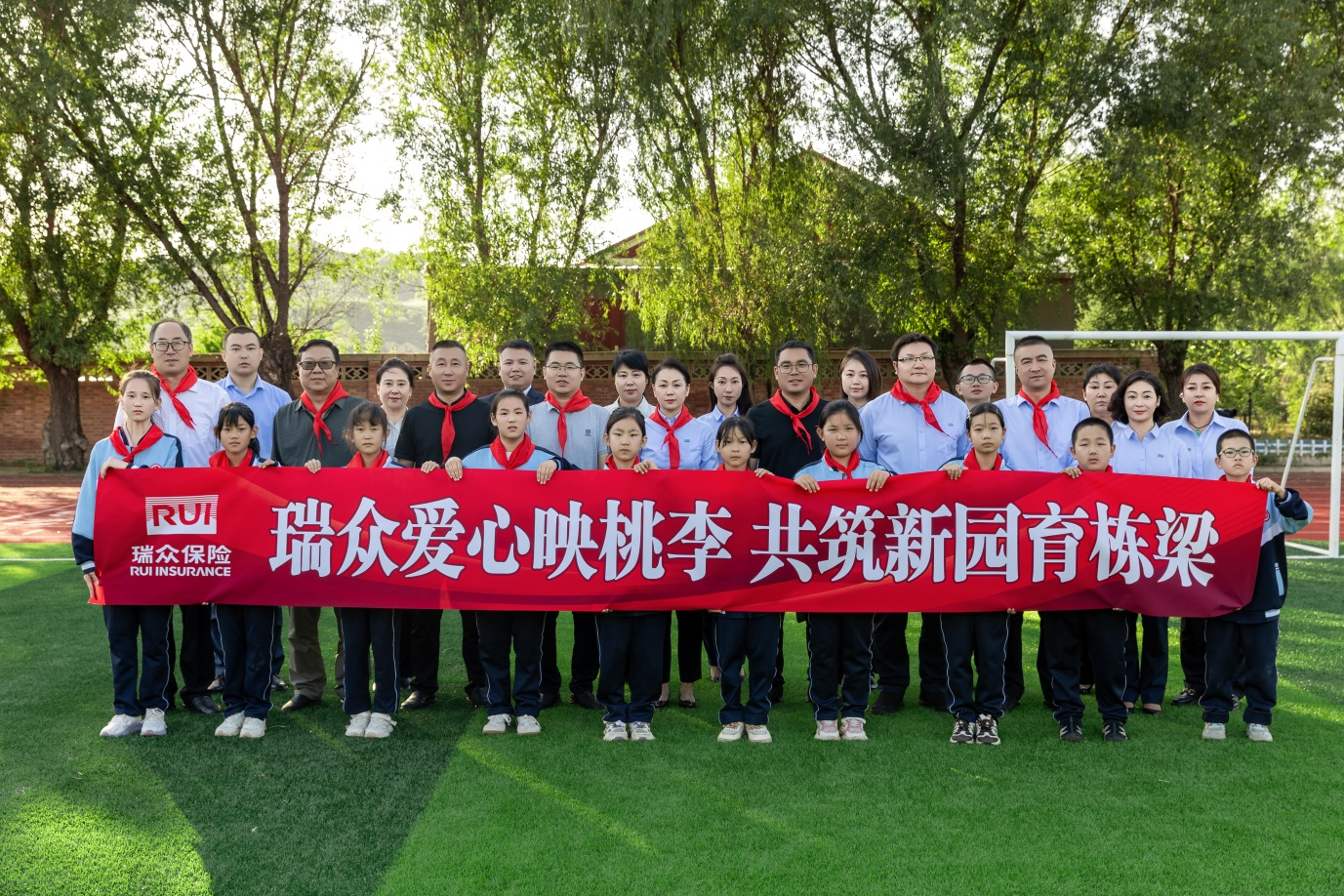 瑞众保险的职工代表与学校师生合影。瑞众保险 供图