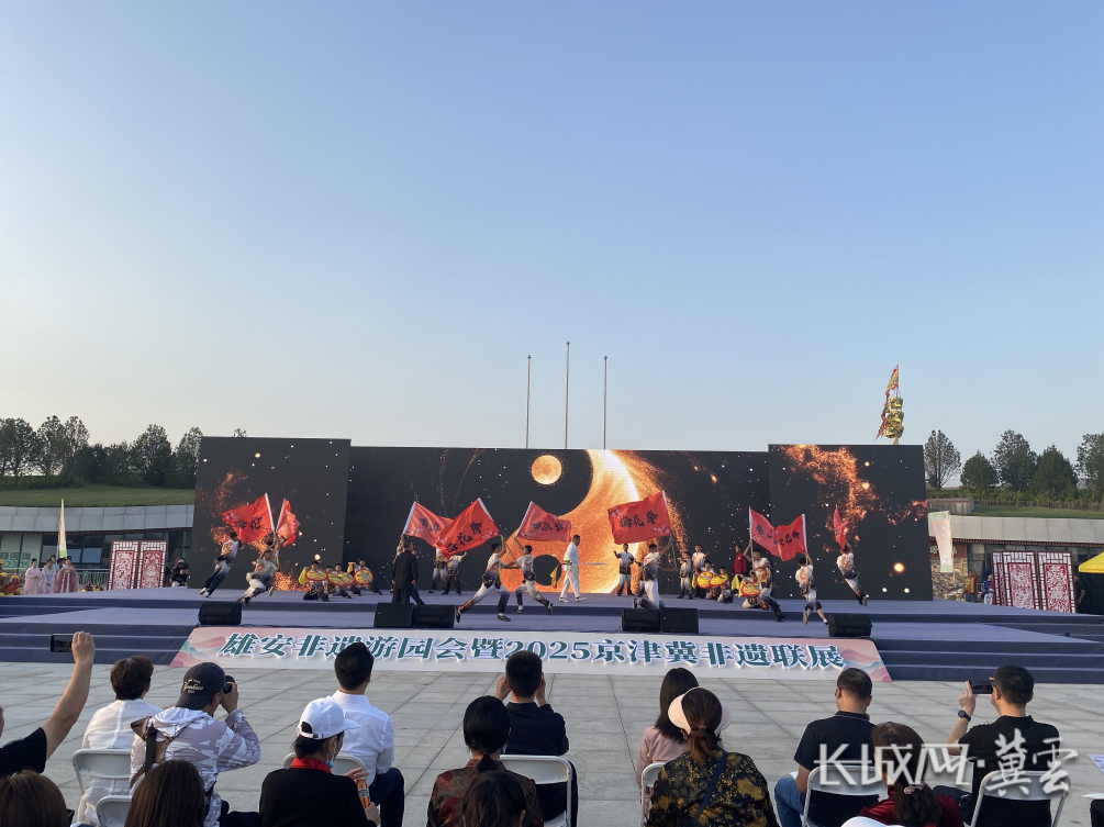 本次活动是京津冀非遗保护传承与协同发展的重要实践。三地非遗代表性项目同台展演,不仅体现了地域文化的多样性,更凸显了文脉相融、协同创新的合力。北京市级非遗古彩戏法以精妙手法展现传统戏法的趣味,天津京韵大鼓《万里春光》用悠扬鼓曲吟咏非遗传承的动人故事,创演秀《一脉新城》则通过古今对话,展现雄安文脉的延续与创新。整场活动以非遗为纽带,印证了“瓣瓣同心”的协同理念,为“这么近,那么美,周末到河北”品牌注入深厚的文化内涵。