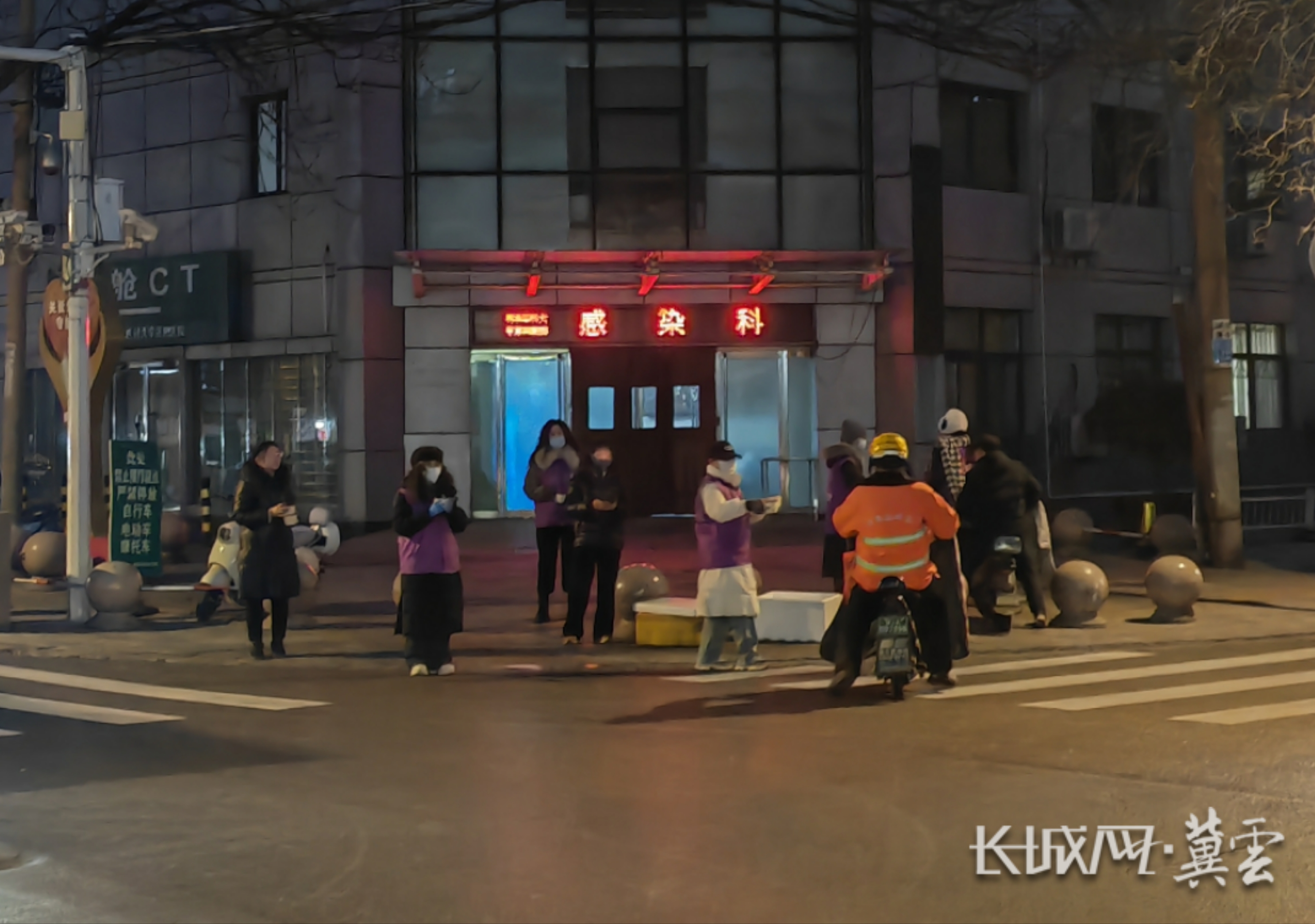 河北省四院门前,志愿者有序向患者及家属分发爱心粥。石家庄市长安区妇联 供图