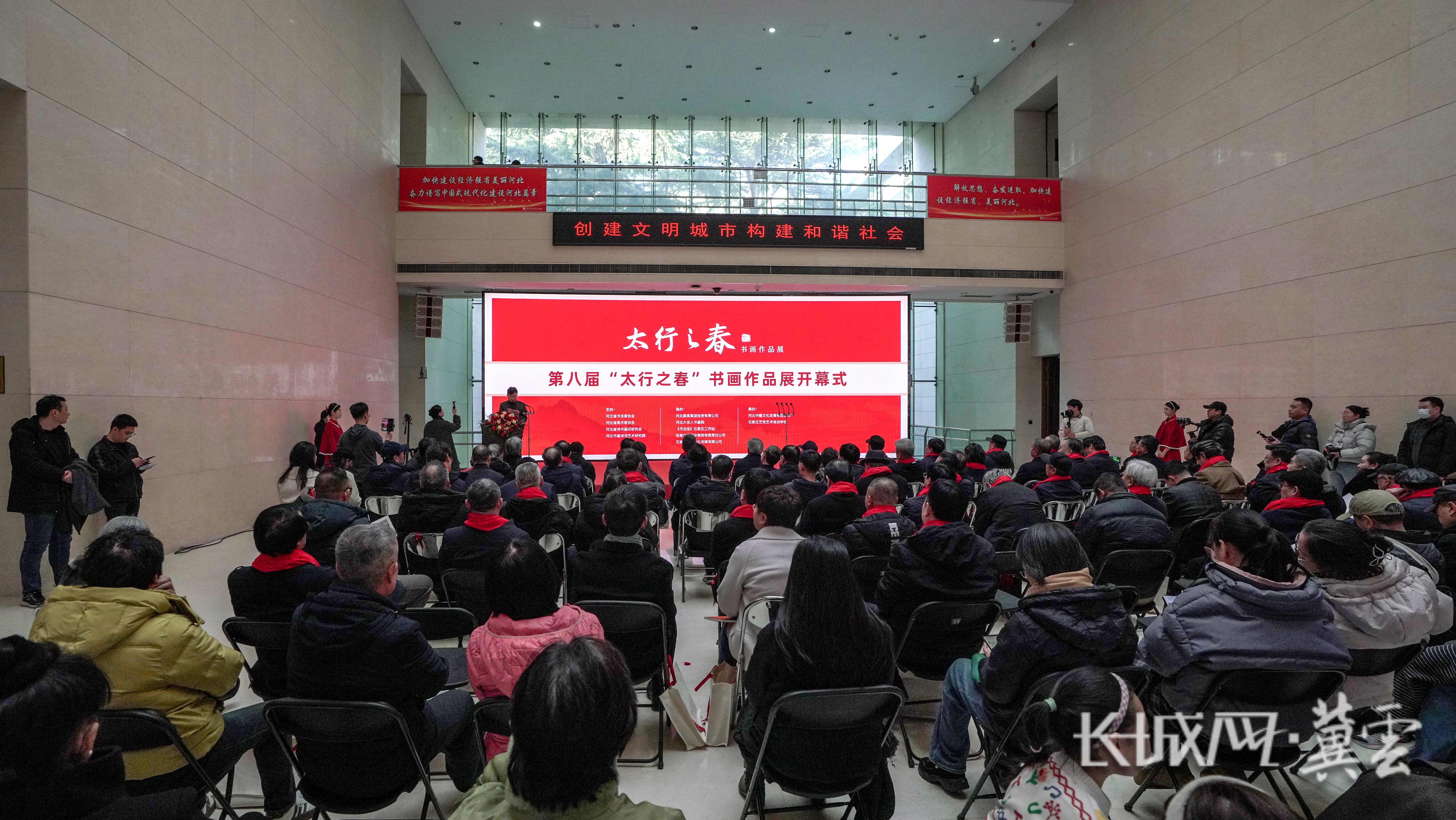 长城网·冀云客户端讯(武海笑 刘婕影)翰墨飘香迎新春,太行文脉续新篇。2月11日,由河北省书法家协会、河北省美术家协会、河北省诗书画印研究会、河北书画诗词艺术研究院联合主办的第八届“太行之春”书画作品展,在石家庄市美术馆开幕。